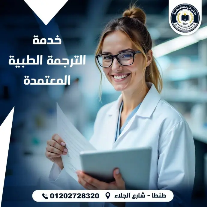 ترجمة دقيقة للتقارير الطبية، الفحوصات، والسجلات الطبية.